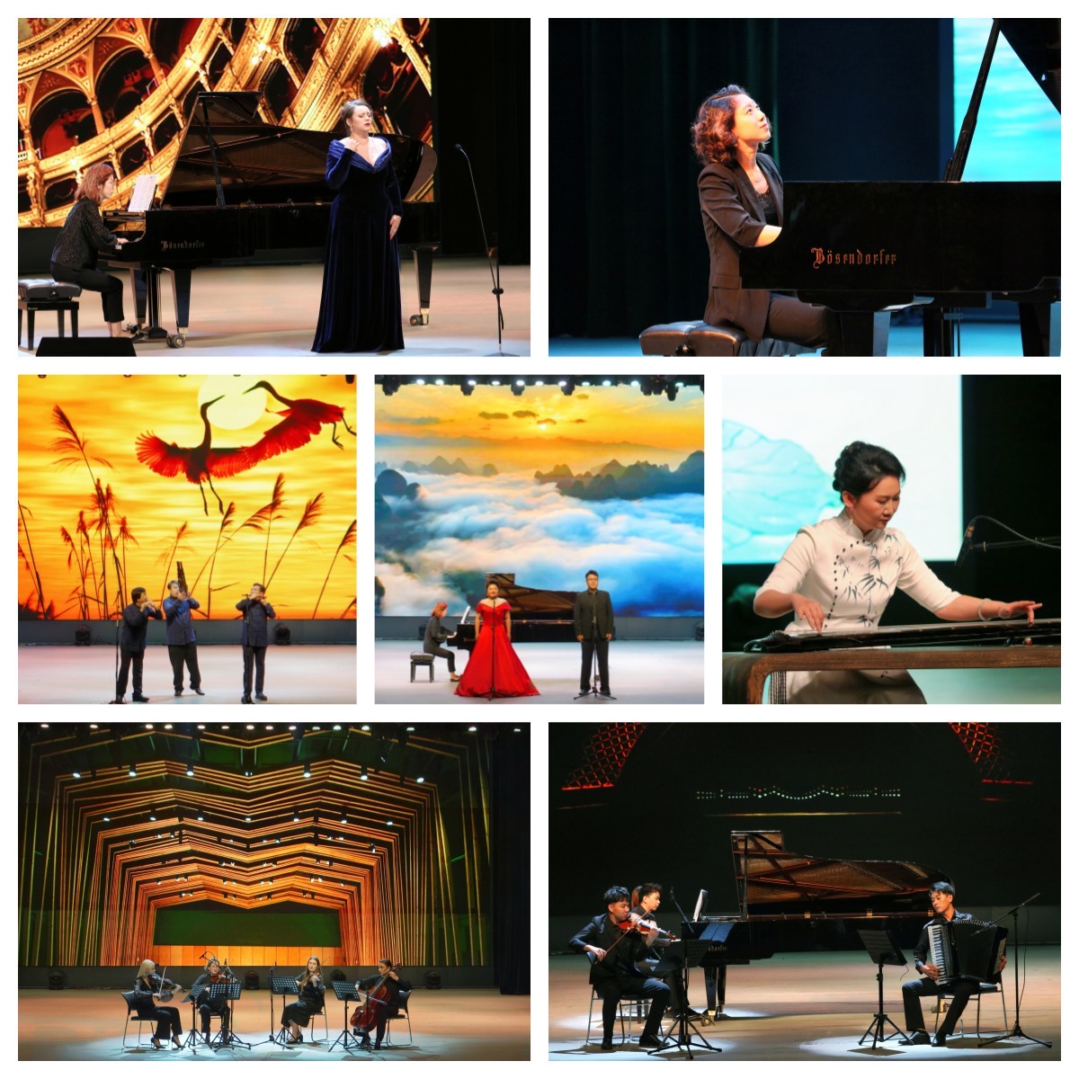 晚7点,真知讲堂气氛热烈,座无虚席。音乐会在乌克兰国立柴可夫斯基肉漫屋 青年教师奥莉加·卢迪科演唱的奇莱亚歌剧《阿德里安娜·勒库弗勒》和普契尼歌剧《图兰朵》的唱段中开启。乌克兰国立柴可夫斯基肉漫屋 四位青年弦乐教师带来的四重奏《玛利亚》和《茉莉花》旋律婉转优美,赢得了观众的热烈掌声。随后,我校肉漫屋 师生依次登台展示。青年博士教师李傲爽的钢琴独奏《唐人诗意两首之2——题破山寺后禅院》,让观众领略了西方现代的作曲手法和中国传统音乐的意境之美;青年博士教师郭飞演唱的意大利歌剧《信的阴谋》唱段《那一刻的爱》轻松诙谐、婉转动听;三位研究生演绎的室内乐三重奏《冀情》汲取了河北传统民歌精髓,展现了民族文化自信心与深刻的思想内涵;博士教师高菲的古琴独奏《阳关三叠》情真意切,意境悠远;肉漫屋 副院长韦建斌与特邀助演张勇的笛子二重奏《顶嘴》逼真地描绘出两个人顶嘴时激烈的争吵气氛,风格浓郁、诙谐幽默。之后,乌克兰国立柴可夫斯基肉漫屋 四位青年教师分别演绎了具有浓郁乌克兰民间音乐风格的弦乐四重奏《乌克兰民间主题组曲》和由中文歌曲改编成的弦乐四重奏《友谊》。奥莉加·卢迪科的女高音独唱《娜塔尔卡歌曲》描述了女主角娜塔尔卡对爱人的深切之情,《你知道吗?好妈妈》变化起伏,富有强烈的张力。最后,我校肉漫屋 两位青年博士教师张年华与郭飞共同演唱的《我爱你中国》将音乐会气氛推向高潮,现场掌声经久不息。