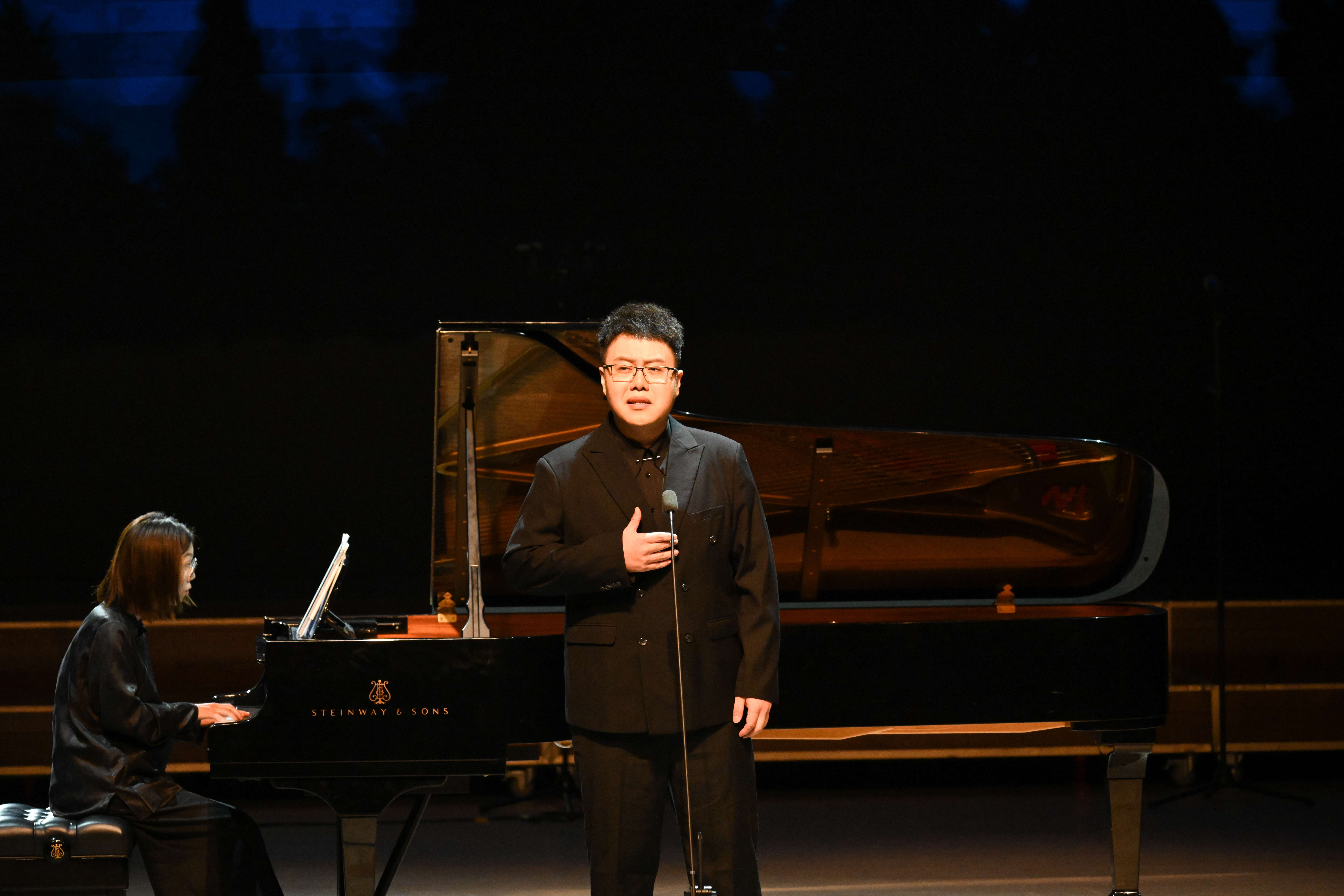 演出分三个篇章进行。在第一篇章“山河泣血,故土难离”,青年博士教师孙义伟带来的男高音独唱《松花江上》表现了抗战初期民族的深重灾难,唤醒中国人民的抗争意识;博士后李清影演唱的《玫瑰三愿》表达了对美好事物的珍视,饱含深沉的家国情怀;青年博士教师陈杨名演唱的《故乡》传递出对故土的眷恋与对侵略者的愤慨;青年博士教师郭飞演唱的《铁蹄下的歌女》深刻地揭示了歌女内心所蕴藏的崇高的爱国热情。